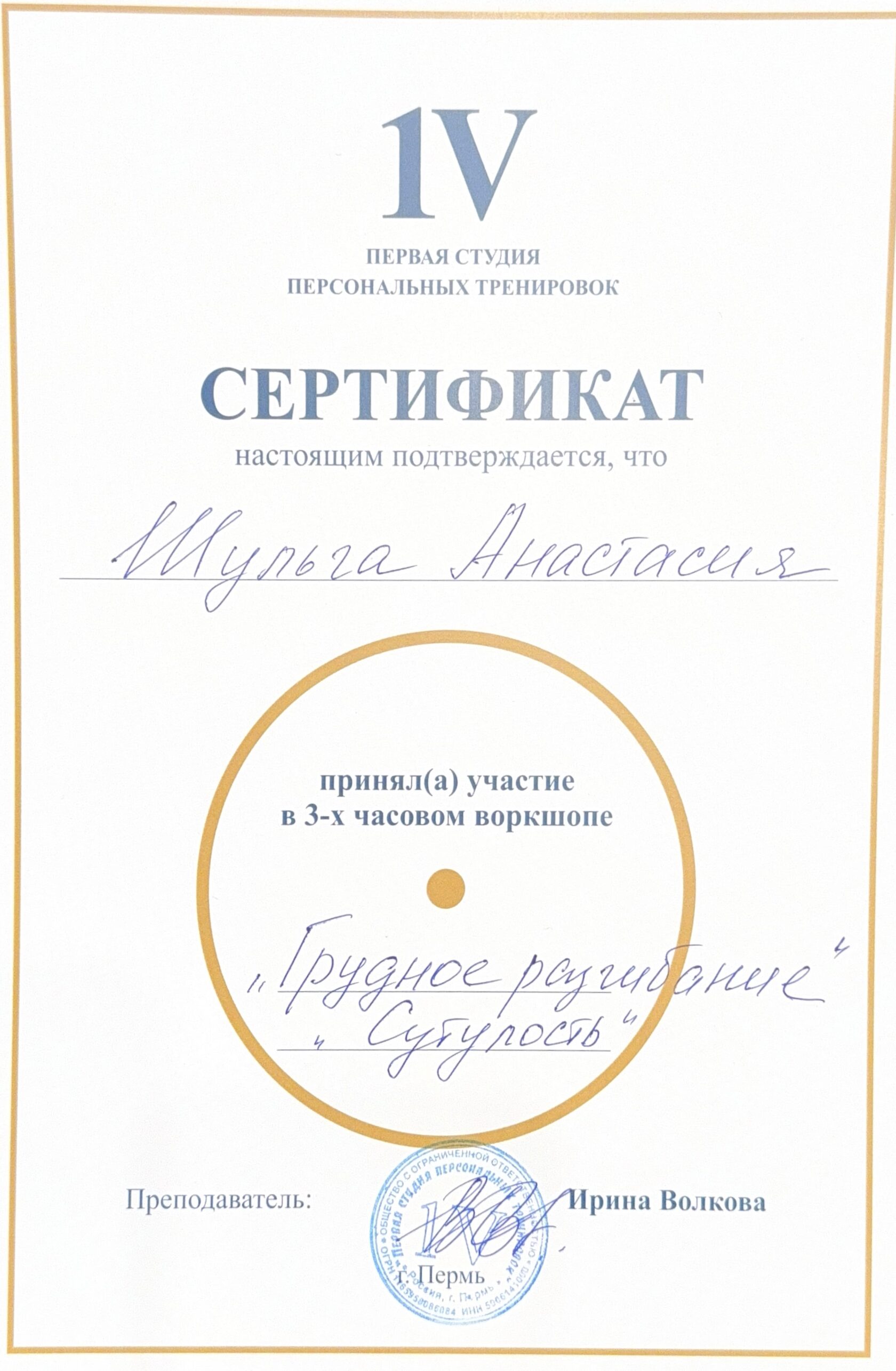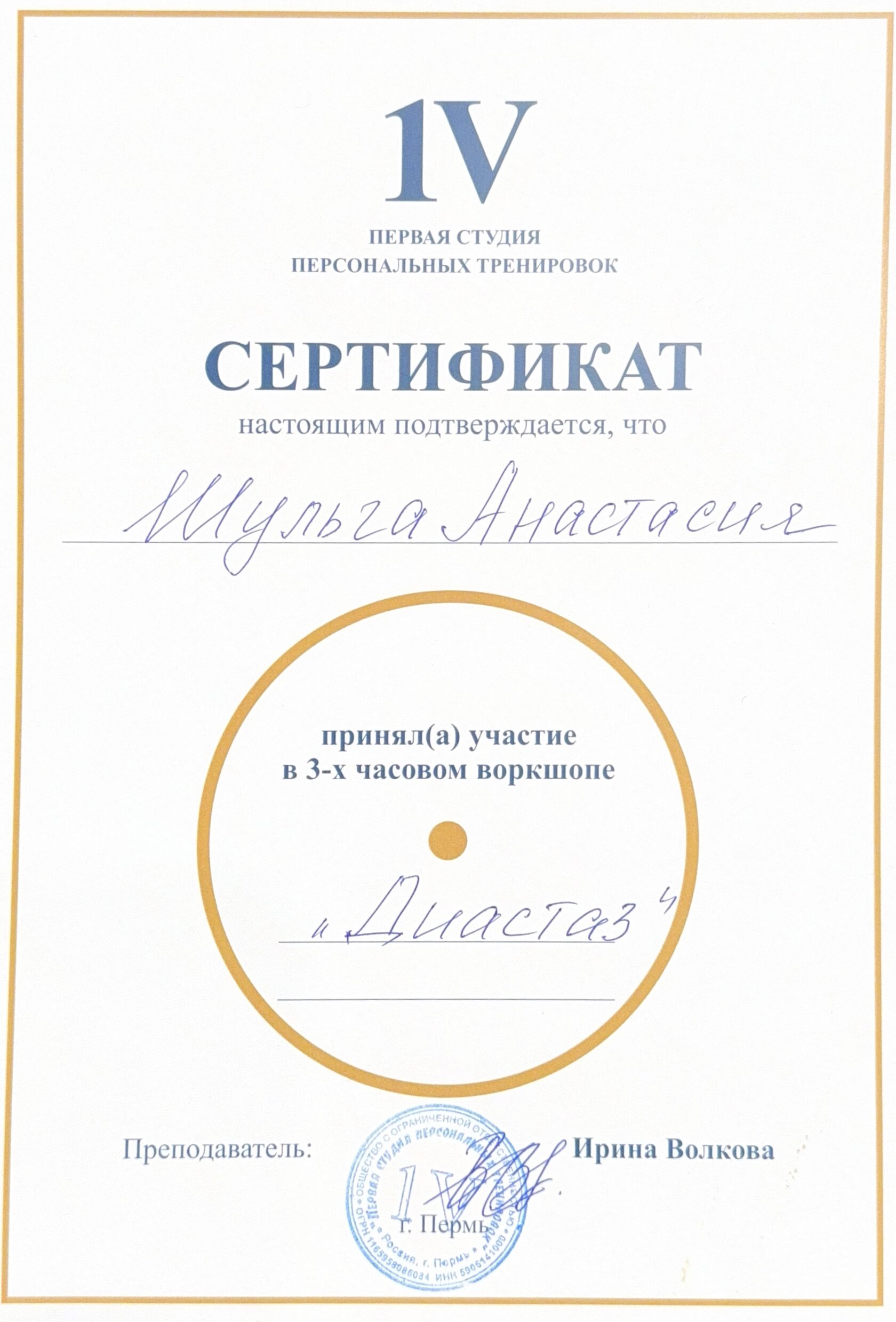 Первая студия персональных тренировок, г. Пермь, 2019 г.