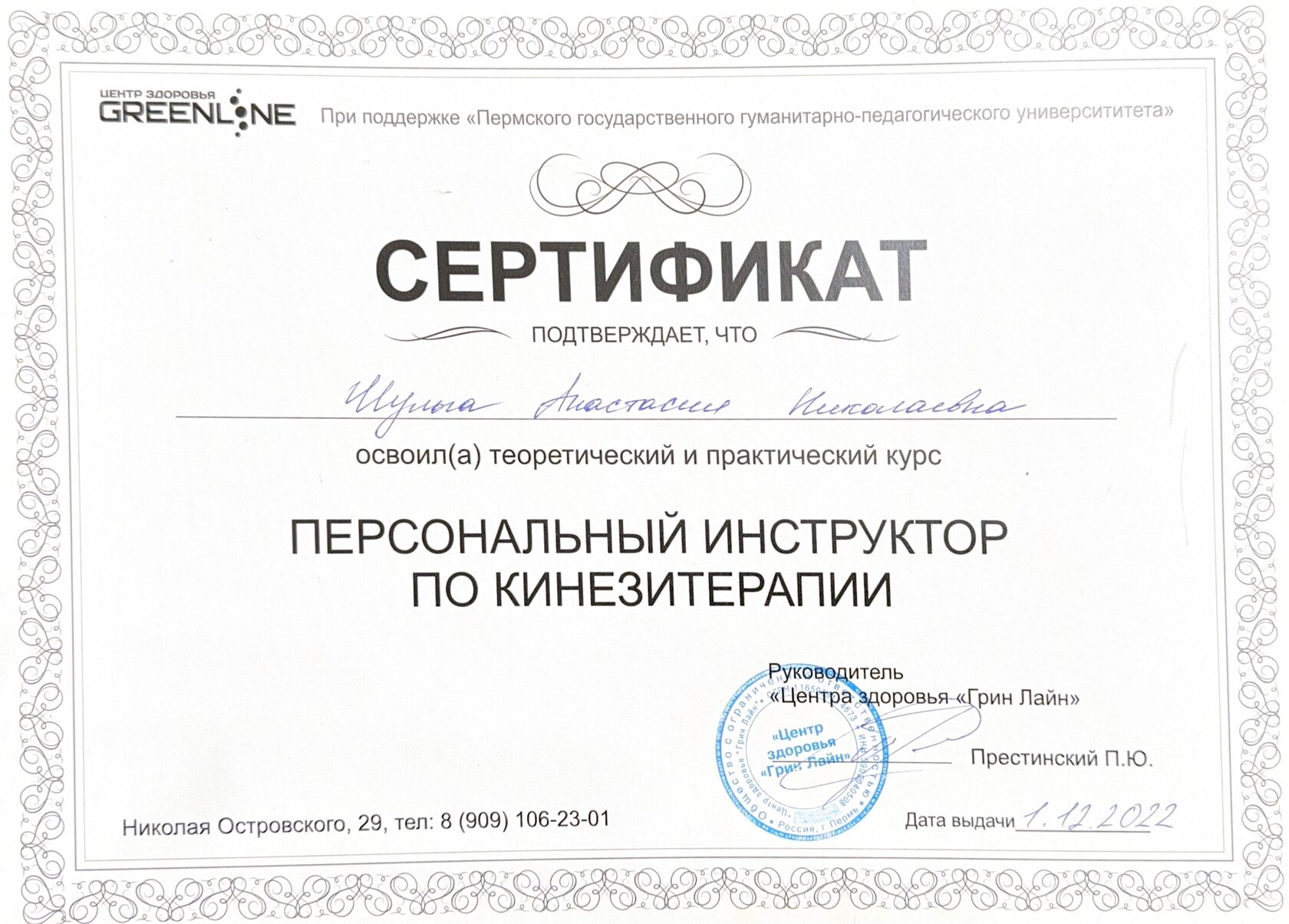 центр здоровья GreenLine, г. Пермь, 2022 г.