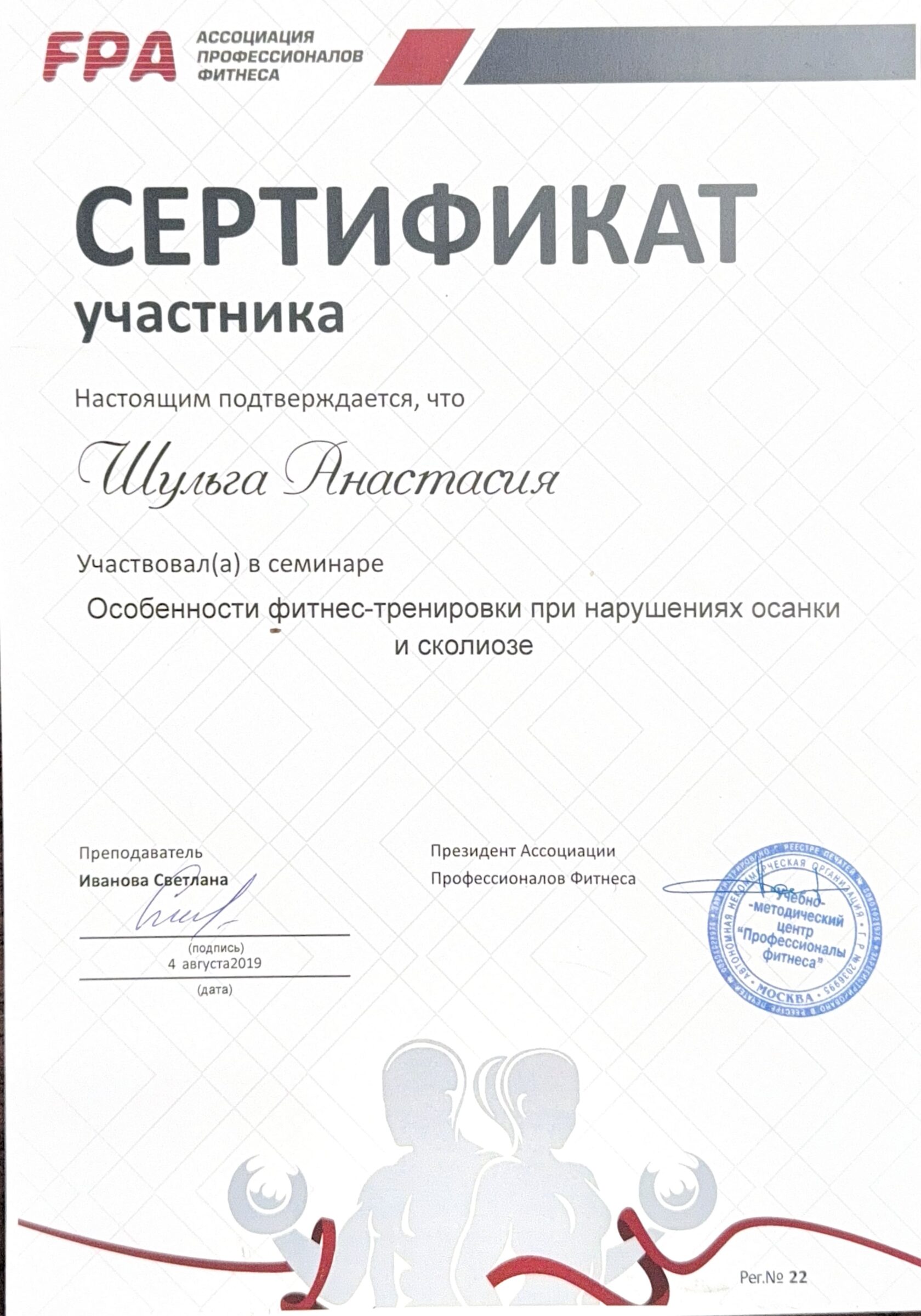 FPA. Ассоциация профессионалов фитнеса, г. Москва, 2019 г.
